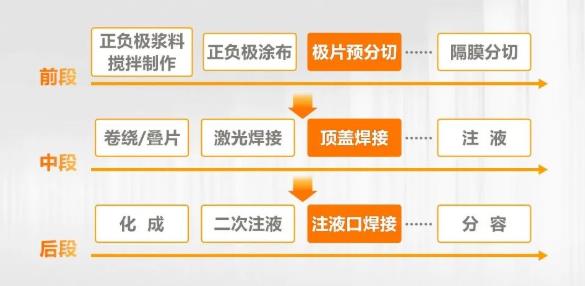 鋰電池工藝鏈分為前、中、后三段,以方形電池為例,其工藝鏈中存在大量的質(zhì)檢需求,傳統(tǒng)視覺檢測可滿足各工藝環(huán)節(jié)的定位和糾偏應(yīng)用。