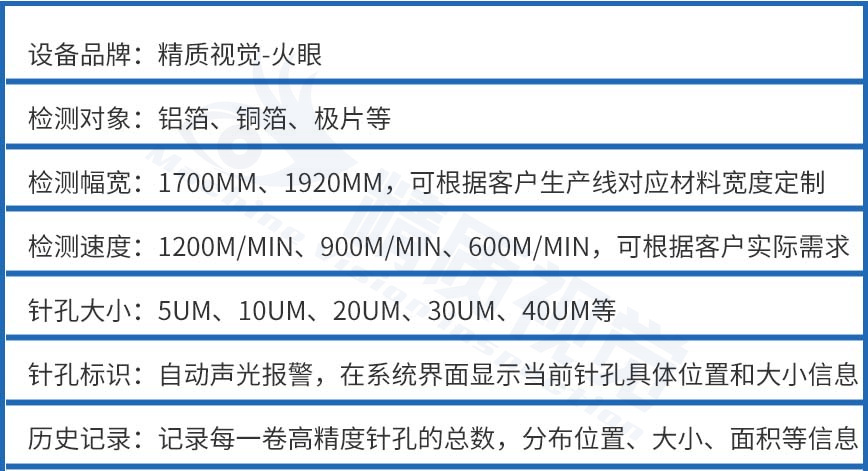 在鋁箔的實際生產(chǎn)過程中,由于各方面因素的影響,鋁箔表面會出現(xiàn)5um、10um等尺寸的微小針孔,嚴(yán)重影響了鋁箔的質(zhì)量,給生產(chǎn)商帶來了不必要的損失。精質(zhì)視覺通過多年技術(shù)及實踐積累,針對不同鋁箔生產(chǎn)工藝的特性需求以及微孔大小,向鋁箔制造商提供全面、有效、定制化的解決方案。W2p機(jī)器視覺檢測設(shè)備_CCD視覺檢測_外觀缺陷檢測系統(tǒng)_精質(zhì)視覺
