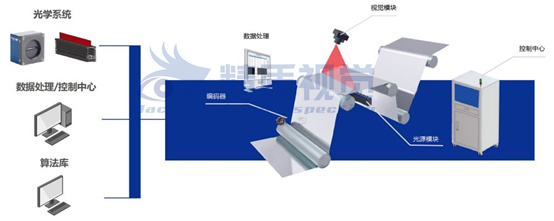 利用高亮LED光源將材料表面打亮,通過編碼器觸發(fā)高速相機(jī)實(shí)時(shí)采集圖片,再由圖像處理系統(tǒng)對(duì)圖片進(jìn)行分析,提取疵點(diǎn),最后由智能分類器對(duì)疵點(diǎn)進(jìn)行精細(xì)化分類,記錄查詢和分析系統(tǒng)提供歷史記錄查詢和各種維度的數(shù)據(jù)分析和展示。