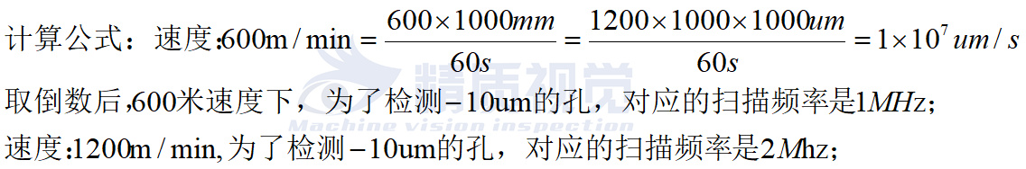 傳統(tǒng)光傳感器,1200m/min的速度下,換算下來1200m/min=20,000,000um/s,檢測(cè)出10um的孔的掃描頻率至少是2MHz,普通的光傳感器最高的掃描頻率最高只能到100kHz,只能在低速情況下檢測(cè)到10um的孔。