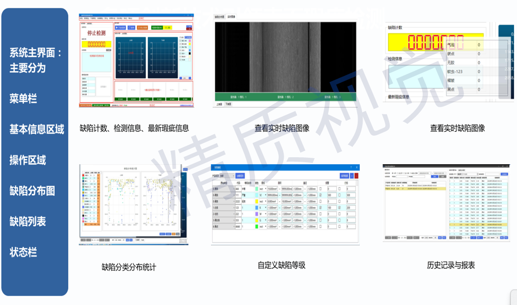 缺陷類型 晶點(diǎn)、線條、黑點(diǎn)、蚊蟲(chóng)、孔洞、劃傷等常見(jiàn)缺陷upI機(jī)器視覺(jué)檢測(cè)設(shè)備_CCD視覺(jué)檢測(cè)_外觀缺陷檢測(cè)系統(tǒng)_精質(zhì)視覺(jué)